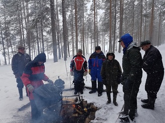 ![]() Oli vähän kurja pilkkisää | ![]() Melkein koko porukka laavulla |